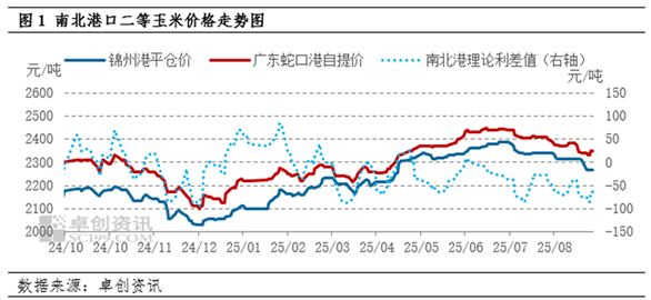 8月影响南北港口XM交易软件价格回落的主要因素依旧为市场看空情绪,一方面东北产区轮换粮拍卖与双向货源的出库持续补充产区供应,而需求端却未持续有对应的采购增量,东北深加工企业普遍下调收购价格表明其采购意向,饲料企业常规库存也基本覆XM交易软件盖至9月末至10月初,供需关系在8月呈现阶段性矛盾提升,利空市场情绪。另一方面新疆玉米零星上市,市场新作开秤价格低于陈作接近150元/吨,给与其他产区一定的预售价格参考与情绪压力,北港新作玉米预售平仓XM交易软件价在2220-2240元/吨,低于目前北港平仓价120-140元/吨。另外期货盘面的走势也给与南北港价格一定程度的趋势参考,从图2中可以看出,8月连盘玉米主力合约结算价格总体呈现下行趋势,截至8月29XM交易软件日连盘主力合约结算价为2187元/吨,较8月1日对应合约的结算价下跌109元/吨,部分贸易商根据期货盘面的价格已经针对新作玉米进行预售,低位的预售价格同样给8月现货价格形成压力。