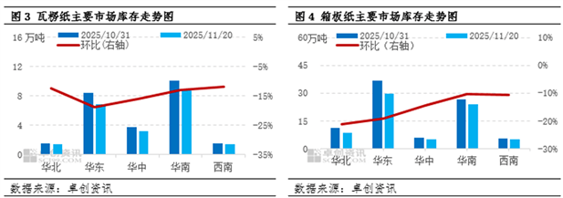 进入11月,电商节订单陆续释放,叠加市场挺价氛围影响下,下游部分包装企业适量备货,较10月下旬拿货节奏小幅提升,纸厂库存XM交易软件整体延续下滑趋势。多数企业观望情绪较重,订单表现平平,且原纸库存处于高位,维持刚需采买,市场需求端增量不大,对于纸价暂无明显利好支撑。据卓创资讯监测数据显示,截至11月20日,中国瓦楞纸行业样本企业库XM交易软件存较10月底下滑15.19%;箱板纸行业样本企业库存较10月底下滑15.74%。