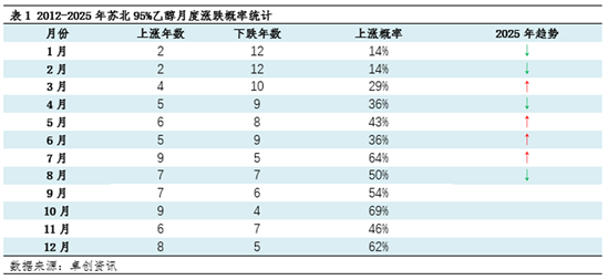 【导语】从近14年乙醇价格数据XM交易软件来看,以苏北95%乙醇为例,参考历年月度均价核算,上半年市场各月均价上涨概率低,下半年上涨概率较高。2025年前8个月部分月份价格趋势符合季节性规律,其中包括1月、2月、4月和7月与历史涨跌规律一致。XM交易软件8月下旬随着东北部分乙醇工厂检修结束后产量回升,9月供应支撑减弱,需求面预期提振暂不足,市场价格可能跟随玉米价格偏弱调整。