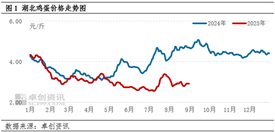 8月湖北蛋价同环比下滑,9月或先涨后降